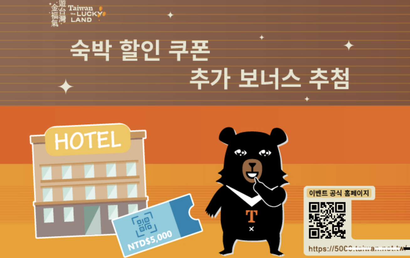 - 참여 숙박업체에서 사용할 수 있는 1,000NTD 할인 쿠폰 5장 제공